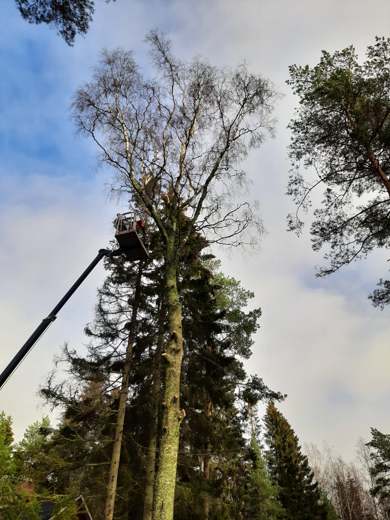 Kaadan piha- ja ongelmapuusi suorakaatona, kiipeilemällä tai nostokorista käsin tehokkaasti ammattitaidolla turvallisuudesta tinkimättä.